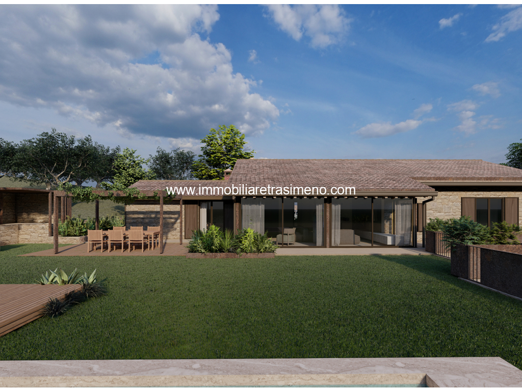 Situated on the picturesque panoramic hills of Passignano sul Trasimeno, this newly built independent villa offers spectacular views of Lake Trasimeno. With a total area of approximately 260 sqm, the property is organized over two levels and combines elegance, comfort, and modernity.