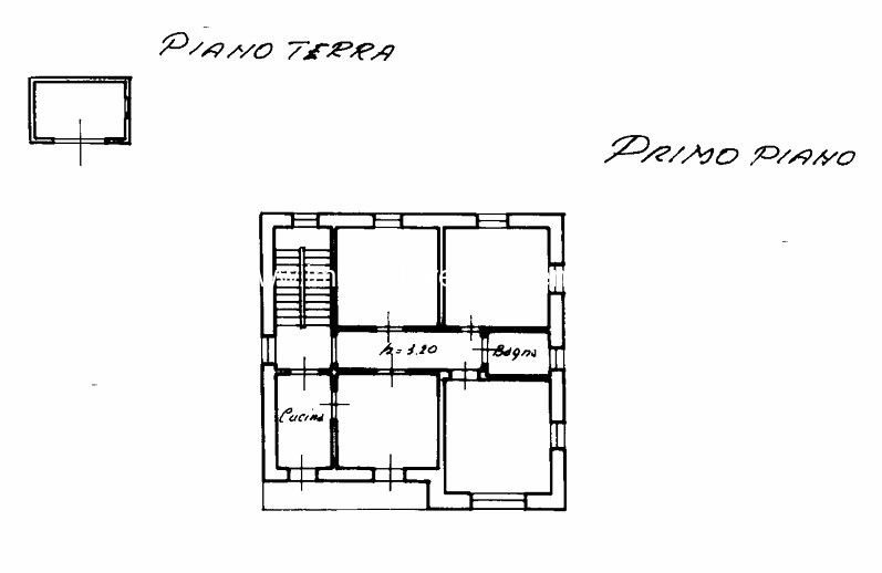 Piano Primo: ingresso su corridoio, cucinotto, sala da pranzo con balcone, soggiorno, due camere da letto e un bagno per totali 108 mq.